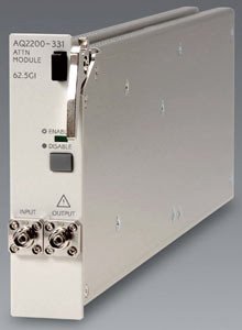The compact AQ2200-331 ATTN module features an optical variable attenuator and an optical power meter monitoring the output power of the optical variable attenuator. The optical monitoring function allows an optical output of any absolute value to be set up from this module.