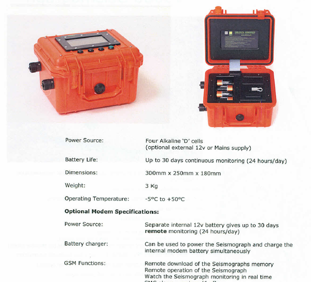The all new V9000 Seismograph is designed and manufactured by Vibrock Ltd to meet the needs of our customers. The V9000 Seismograph is a battery powered portable vibration monitor, designed for monitoring blasting, piling, demolition, construction and traffic vibrations. It can also monitor dominant frequencies as well as air overpressure from blasting, using the optional microphone.
