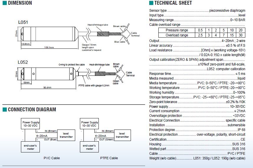This model: 0-1.0bar (Liquid level:0-10m)